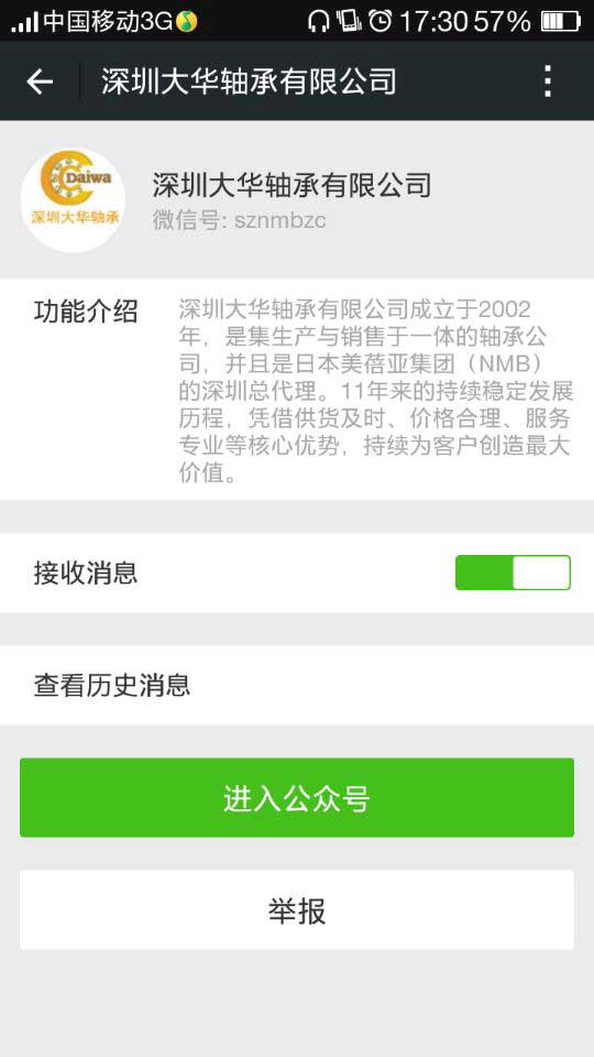深圳大華軸承有限公司企業(yè)微信服務(wù)號(hào)正式開通,歡迎各位新老客戶進(jìn)行關(guān)注!我們會(huì)獻(xiàn)上最優(yōu)質(zhì)的軸承信息